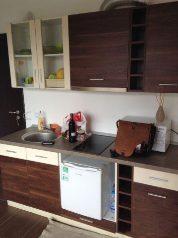 The offered studio is located on fourth floor in the complex. It consists of entrance hall, living room with kitchenette, bathroom with WC and terrace. The studio is for sale fully furnished! The complex has 140 apartments with different area and d...