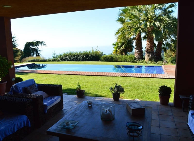 Country house in traditional Mediterranean style with the pool and panoramic views of the sea of the coast near Barcelona