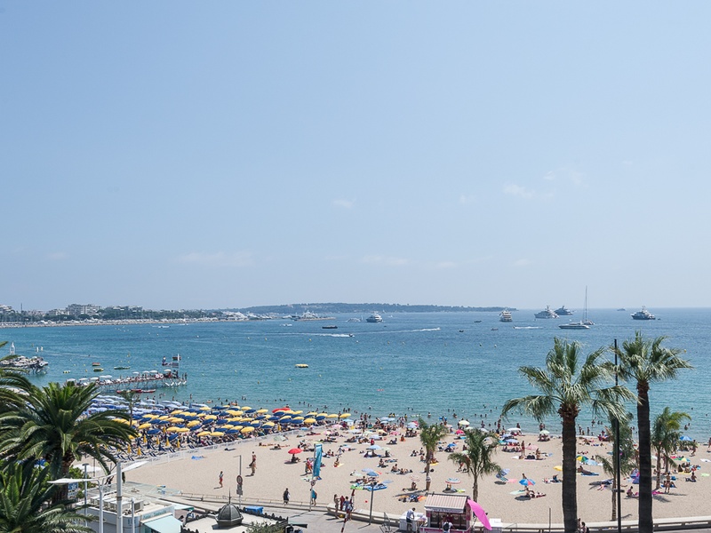 Apartment in the center of La Croisette. An enchanting view of the Lerin islands, bay of Cannes and the Esterel Mountains. The 3rd floor, high ceilings Living area 145 m2 + terrace 20 m2 - Entrance, guest toilet. - Spacious lounge with views of t...