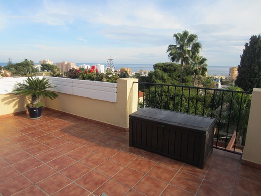 Beautiful penthouse with panoramic views towards the sea. Bright, all exterior, two double bedrooms with fitted-in wardrobes, one with balcony (sea view), the other with large bathroom en suite, ,jacuzzi bath tub and exit to a private terrace of abou...