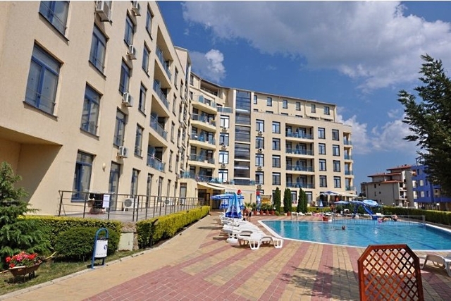 One of the most modern and luxurious complex on the Bulgarian Riviera. Located in the western part of Sunny Beach, just 300 meters from the beach and 200 meters from the central area. Fully furnished studio and kitchenette with air conditioning, e...