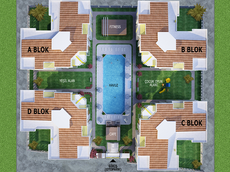 Комплекс называется Bileydi Yasam Evleri (Билиеди Яшам Евлери), находится вАнталии в районе Коньяалты. Он состоит из 4 жилых домов, придомовой территории и большого бассейна с детской секцией. Территория комплекса составляет 6600 м2. Общее количество апартаментов в комплексе — 154.