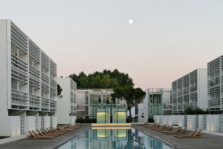 Современные  апартаменты на 2-м этаже в жилом комплексе, расположенные в двух шагах от моря в г. Лидо-ди-Езоло.Общая площадь – 75 м2.Планировка – просторная гостиная с открытой кухней и выходом на террасу, 2 спальные комнаты, ванная комната, гараж в подземном уровне.Продажа с мебелью.Система отопления и охлаждения через потолок.Кондоминиальные расходы около € 2000 в год.