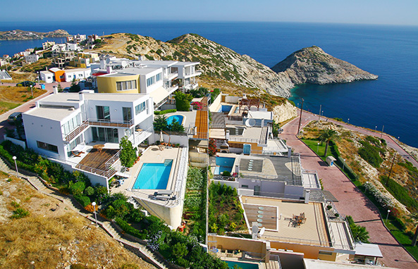 The site of the project lies on the north-western side of Iraklion Bay in Crete, along a 1km beachfront with panoramic views. It comprises housing units that very in terms of size and design, to cater for holidaymakers as well as permanent residents. The units are grouped together in neighbourhoods, each with its distinct architectural style which blend with the natural environment, and ensuring the privacy of its residents and promises panoramic sea views. Shared swimming-pools are included.
