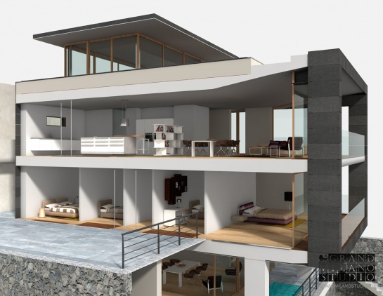 - Attic-floor: lounge area, summer kitchen and a panoramic terrace with chaise-longue.