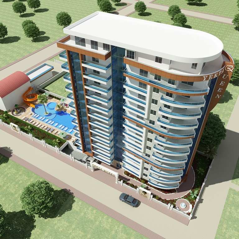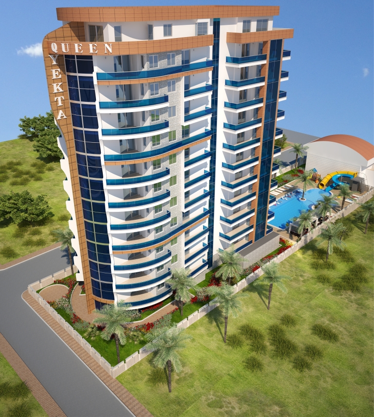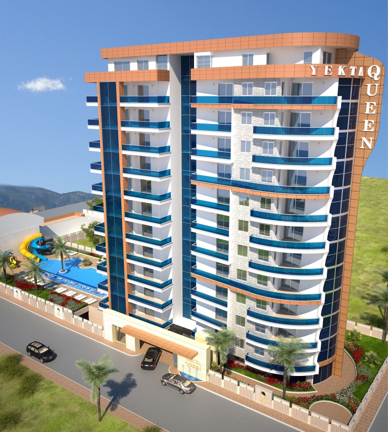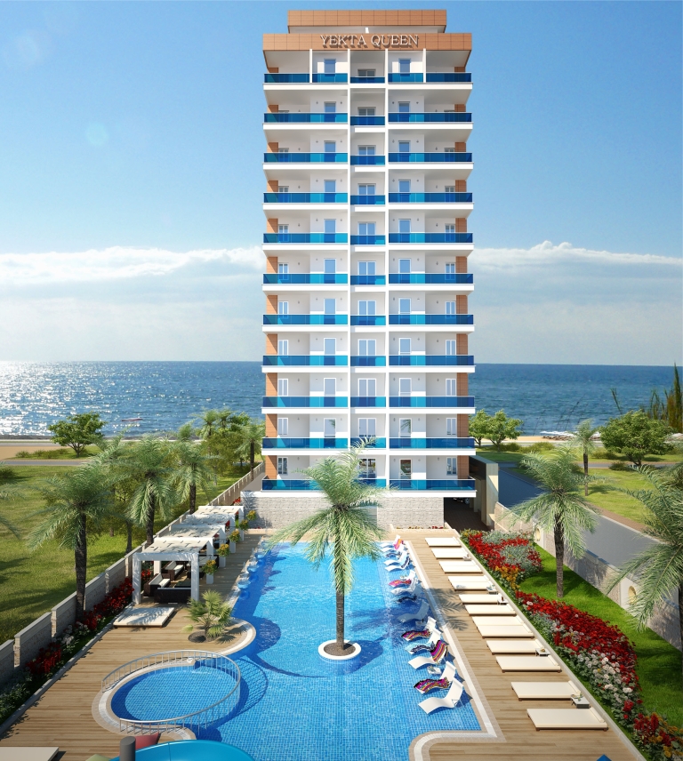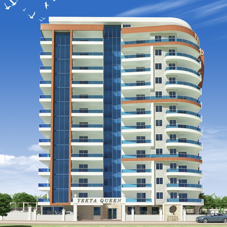 Yekta Queen Residence – уникальный жилой комплекс класс-люкс на 1 береговой линии с великолепными панорамными видами на Средиземное море. Его строительство началось в Декабре 2013 г. и сдан комплекс будет в Мае 2015 г. На этот комплекс можем сделать Вам беспроцентную рассрочку платежа до конца этапа строительства.Располагается жилой комплекс в развитом и экологически чистом районе Махмутлар г.Аланья. Сочетание горного прозрачного воздуха и бескрайней глади лазурного Средиземного моря при отсутсвии суеты большого города является просто бесценным достоинством этого места. Однако район современный и это значит, что вся городская инфраструктура – центральный променад, магазины, рестораны, парки, автобусные остановки и пр. – все это в шаговой доступности. Наша компания позаботилась об уюте не только аппартаментов, но и всей прилегающей территории. Вы сможете насладиться СПА-процедурами ( 3 вида саун) и расслабиться в открытом бассейне и в крытом бассейне с подогревом. Отдохуть и пообщаться с близкими и друзьями вы всегда сможете в беседках для отдыха, а Ваш глаз вокруг всегда будет радовать шикарный тропический сад , над высадкой которого будут работать лучшие ландшафтные дизайнеры нашего холдинга. Дети смогут порезвиться на водных горках или детской площадке. Для владельцев автомобилей будет создан подземный паркинг. Мы заботимся о Вашем спокойствии, поэтому по территории комплекса и в доме будет установлено видеонаблюдение. Для удобства на территории комплекса будет зона бесплатного Wı-Fı интернета и будет установлено спутниковое телевидение Три-колор. У комплекса будет своя береговая линия с пирсом! Все квартиры сдаются с высококачественной чистовой отделкой и частичной мебелью.