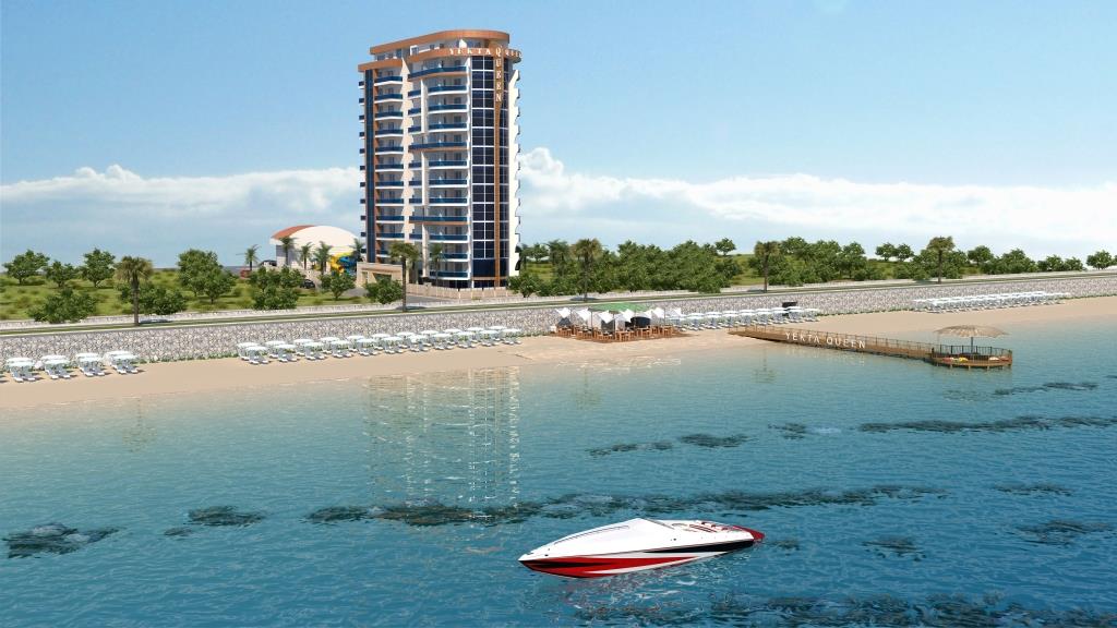 Yekta Queen Residence – уникальный жилой комплекс класс-люкс на 1 береговой линии с великолепными панорамными видами на Средиземное море. Его строительство началось в Декабре 2013 г. и сдан комплекс будет в  Мае 2015 г.  На этот комплекс можем сделать Вам беспроцентную рассрочку платежа до конца этапа строительства.Располагается жилой комплекс в развитом и экологически чистом районе Махмутлар г.Аланья. Сочетание горного прозрачного воздуха и  бескрайней глади лазурного Средиземного моря при отсутсвии суеты большого города является просто бесценным достоинством этого места.  Однако район современный и это значит, что вся городская инфраструктура – центральный променад, магазины, рестораны, парки, автобусные остановки и пр. – все это в шаговой доступности.         Наша компания позаботилась об уюте не только аппартаментов, но и всей прилегающей территории. Вы сможете насладиться СПА-процедурами ( 3 вида саун)  и расслабиться в открытом бассейне и в крытом бассейне с подогревом. Отдохуть и пообщаться с близкими и друзьями вы всегда сможете в беседках для отдыха, а Ваш глаз вокруг всегда будет радовать шикарный тропический сад , над высадкой которого будут работать лучшие ландшафтные дизайнеры нашего холдинга. Дети смогут порезвиться на водных горках или детской площадке. Для владельцев автомобилей будет создан подземный паркинг. Мы заботимся о Вашем спокойствии, поэтому по территории комплекса и в доме будет установлено видеонаблюдение. Для удобства на территории комплекса будет зона бесплатного Wı-Fı интернета и будет установлено спутниковое телевидение Три-колор. У комплекса будет своя береговая линия с пирсом!  Все квартиры сдаются с высококачественной чистовой отделкой и частичной мебелью.