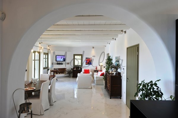 Based on traditional architecture, this white washed house was carefully designed and built by its owners, laying on a 1-hectare property (10,000 m2). It is located on a hillside overlooking Farangas Bay, on the southern part of Paros Island. The main terrace infinity edge pool and the surrounding nature, guarantee that Guests will enjoy a rare experience during their stay.