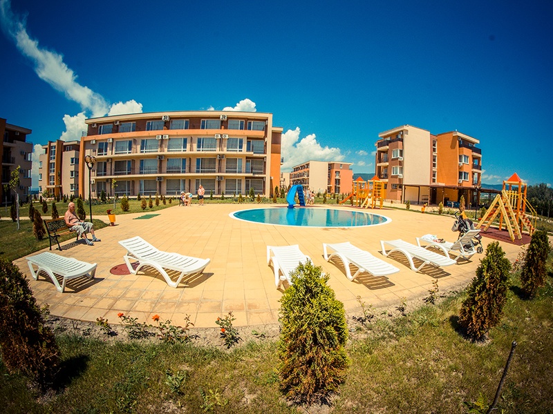 Комплекс находится на курорте Солнечный Берег напротив самого большого аквапарка, всего в 800м от лучшего пляжа на побережье. До центра курорта менее 500 метров.