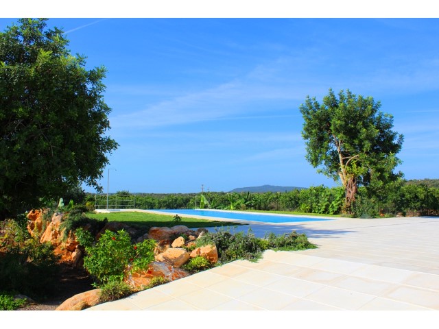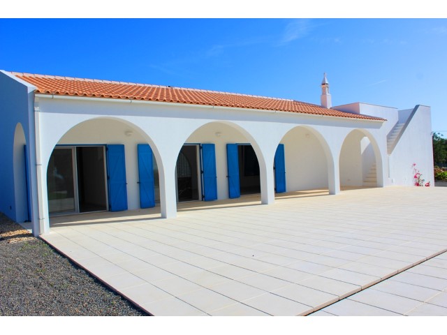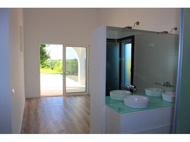 BRAND NEW luxurious 3 bedroom villa, located in Santo Estevão, on a plot of 9990 m2. This very beautiful modern villa has 3 bedrooms, two en suite and dressing room, the third with wardrobe, living room with fireplace and fully equipped kitchen. Solar panels, pre-installation of air conditioning, alarm system and double glazed windows with thermal break. Amazing sea views. Modern finishes. Garden with pool. Plot is fully fenced.