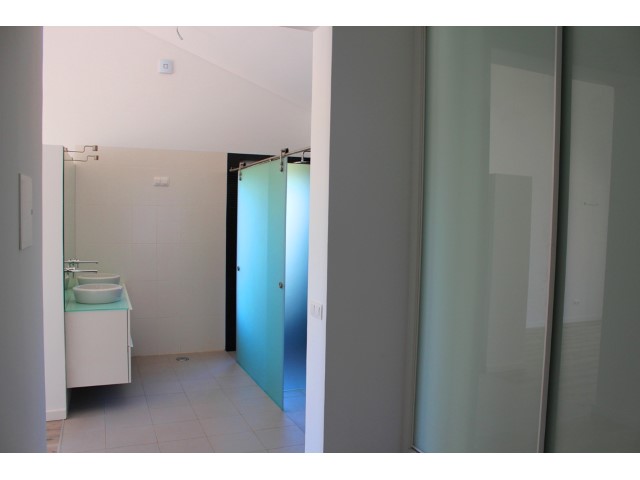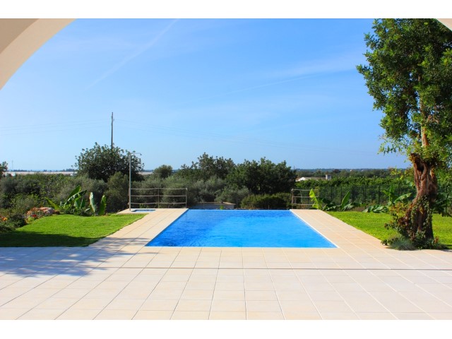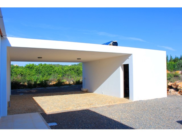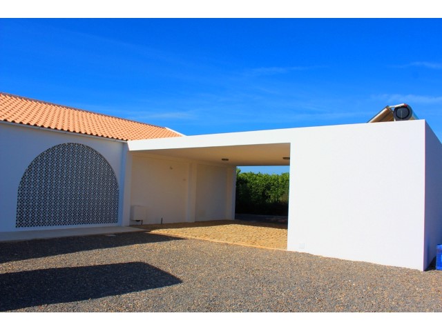 BRAND NEW luxurious 3 bedroom villa, located in Santo Estevão, on a plot of 9990 m2. This very beautiful modern villa has 3 bedrooms, two en suite and dressing room, the third with wardrobe, living room with fireplace and fully equipped kitchen. Solar panels, pre-installation of air conditioning, alarm system and double glazed windows with thermal break. Amazing sea views. Modern finishes. Garden with pool. Plot is fully fenced.