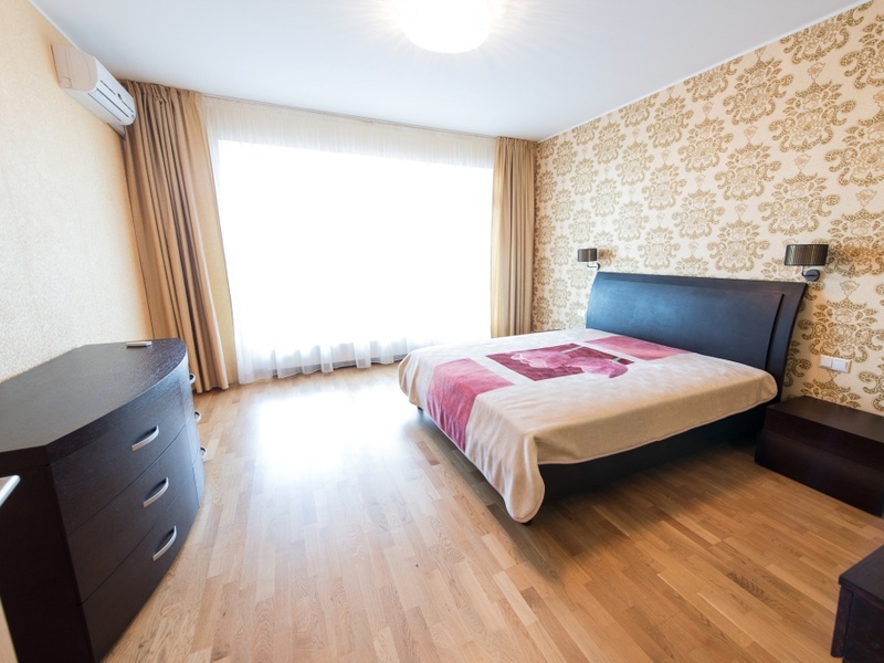 Предлагается трехкомнатная квартира в одном из самых перспективных мест в центре Риги в новом проекте ”Skanstes Virsotnes” ("Вершини Сканстес"). Очень хорошее месторасположение, тихий и ухоженный район, удобный общественный транспорт, развитая инфраструктура, рядом Олимпийский спортивный центр, Арена Рига (хоккей, концерты), магазины, школы, детские садики. На машине 5 минут до Старого города и ж/д вокзала. Во дворе дома детская игровая площадка, озеленённая территория, круглосуточная живая охрана и видеонаблюдение. Входные двери дома оборудованы кодовым ключом и домофоном, просторный подъезд. В доме есть лифт. Общая площадь квартиры 110 кв. м., 7 этаж. Планировка: большая гостиная объединенная с кухней, 2 спальни, 2 ванных комнаты, большая гардеробная. Панорамные окна на южную сторону во всех комнатах, 2 больших лоджии с красивым видом на Старый город. Новая мебель, бытовая техника и кондиционеры.