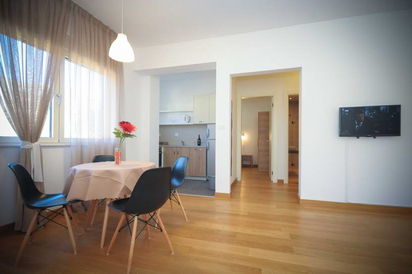 Состав: в апартаментах имеется спальня с двуспальной кроватью, гостиная с раскладывающимся диваном, кухня, ванная комната с душевой кабиной , туалетом, биде и умывальником, терраса с садовой мебелью с панорамным видом на горы.