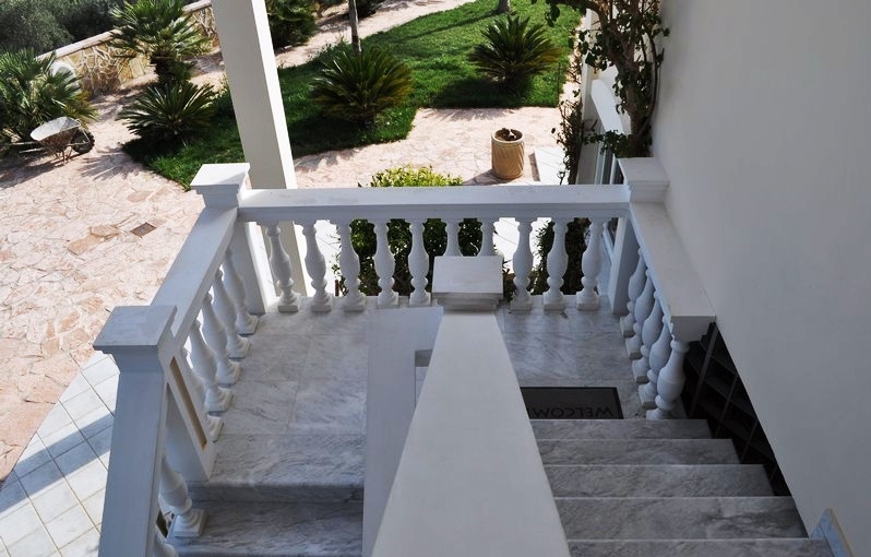 Участок полностью благоустроен: большой бассейн площадью 90 кв.м, отделанный мелким кафелем, мраморная беседка, два барбекю и печь, сад площадью 2.000 кв.м с фруктовыми цитрусовыми деревьями (мандарины, апельсины, лимоны), закрытая парковочная зона.