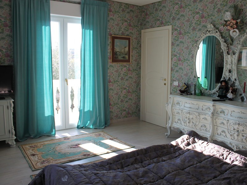 Кухня   с кафельной плиткой  ручной  работы. Ванна. Лестница  из мрамора кремовый цветок ведет на второй этаж.  Тамрасположена  хозяйская  спальня с балконом,  вид на виноградники и горы. Для отделки стен использованы уникальные обоифирмы Celine ,приобретенные на одной  из киностудий .Спальня обставлена мебелью в венецианском стиле, Гардеробная  комната. Ванна 18 метров отделанная мрамором  цвет оникс с двойным умывальником из португальского мрамора., джакузи на двеперсоны отделанная  деревом тек.