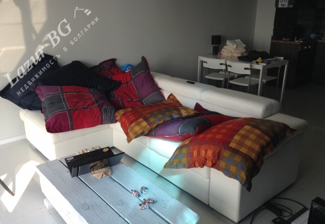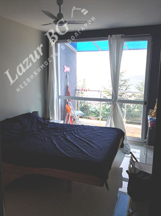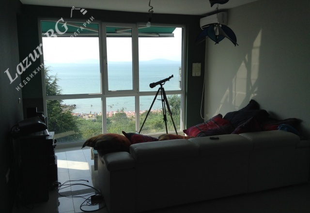 The apartment is located 100 m away from the beach, in a close proximity to the pedestrian street. Ideal place for a quiet summer holiday and the all-year-round living. The apartment is located on the third floor of a five-storeyed residential building. The total area of the apartment is 62 sq.m. it consists of a living room with a kitchen, a corridor, a bedroom, a bathroom, and a terrace. Beautiful sea view from each room and the terrace! The apartment is fully furnished and equipped.