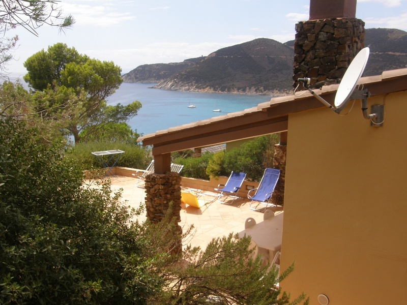 (Вилласимиус (Villasimius) — небольшой поселок на юго-восточной оконечности Сардинии, на западном берегу реки Фокси, впадающей в залив Карбонара. Вилласимиус, расположенный всего в 35 км от Кальяри и основанный в 1812 году, — это не только пляжи и море, это еще и множество дискотек, клубов, пиццерий и ресторанов, а также одно из наиболее предпочитаемых мест для любителей «ночной» жизни).Вилла обладает широкой верандой с захватывающим видом на пляж, одна часть этой терассы имеет навес, где можно приятно отдохнуть или же пообедать в теньке. К пляжу с терассы ведёт частный вход.