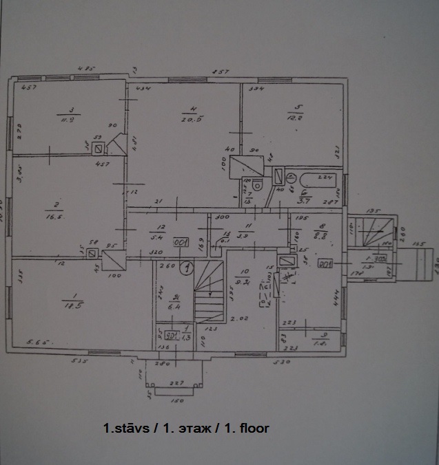 - 1 этаж: 6 комнат, кухня, кладовка, ванная комната и отдельный туалет.