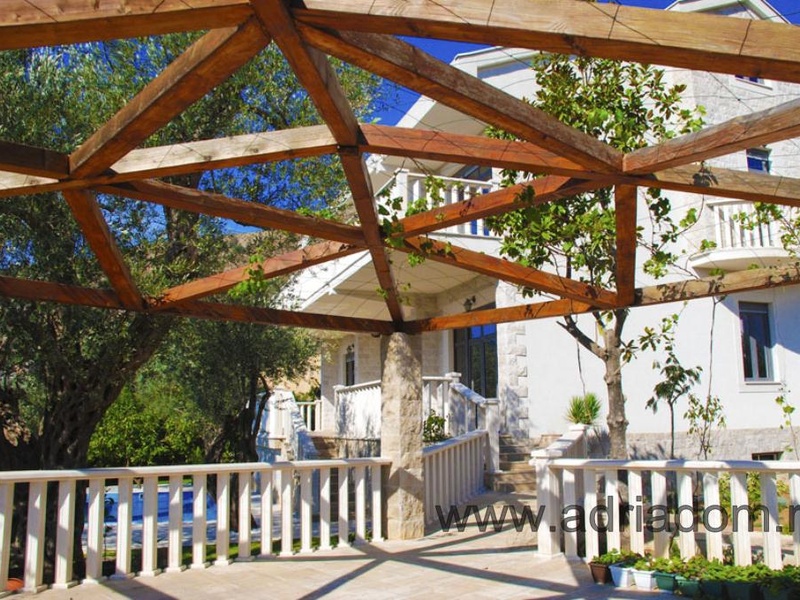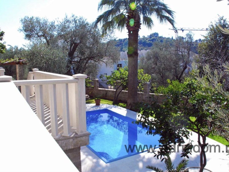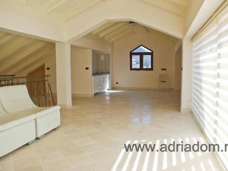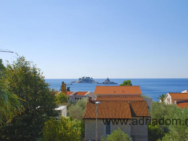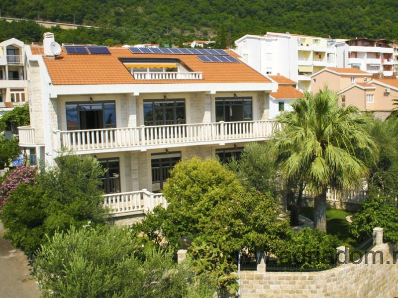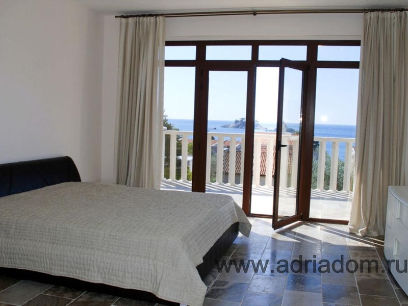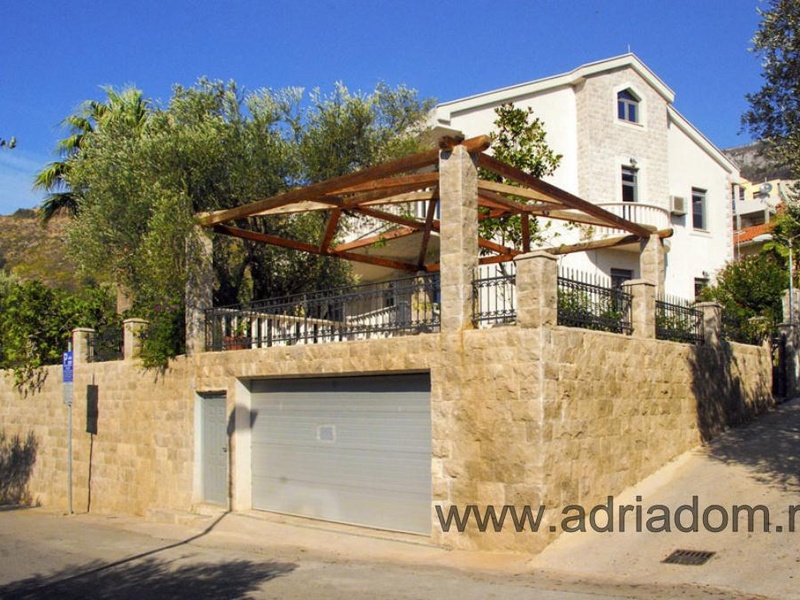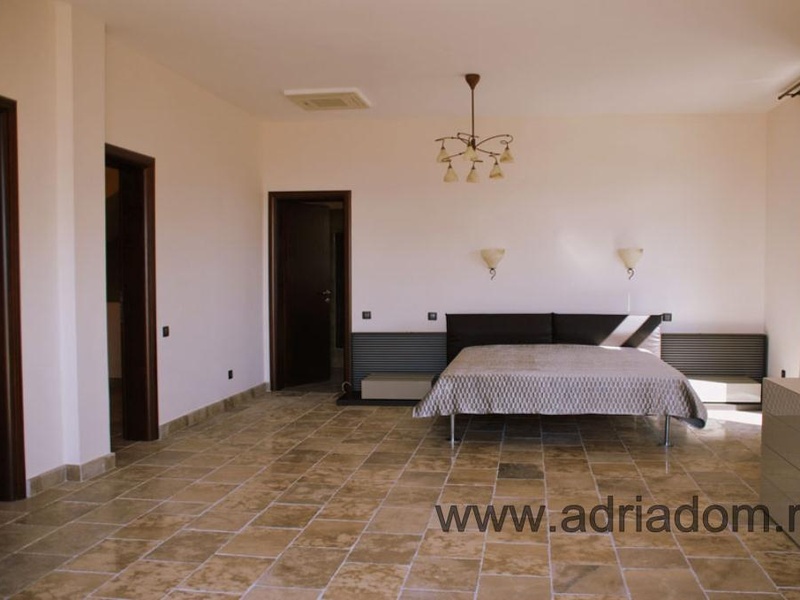 For sale new villa and a garage 36 sq.m. overlooking the sea and Petrovac. Terrace of 95 sqm Three residential floors, ground floor. Five bedrooms, five bathrooms. Maid's room with separate entrance. Garage for two jeeps. Austrian pool with automatic dome.