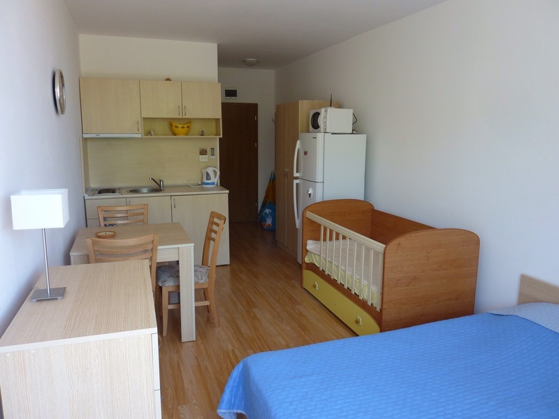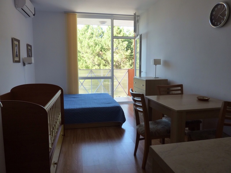 ”, Солнечный Берег. В квартире етсь все необходимое для вашего отдыха или же постоянного проживания. Установлен кондиционер с сплит системой тепло/холод. Планировка: гостиная с кухней, балкон, санузел с ванной. Площадь – 32 кв. м. Этаж – 4. Aкт 16 В комплексе: бассейн, детская площадка, ресепшн, охраняемая парковка, красивый зеленый и спокойный район.