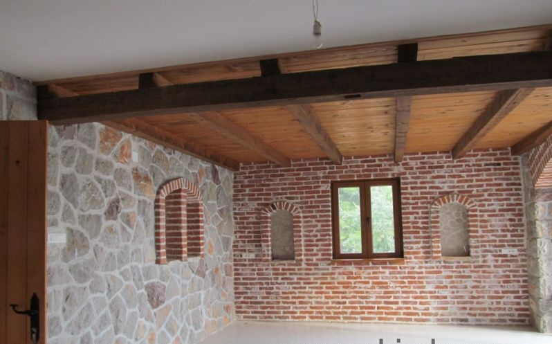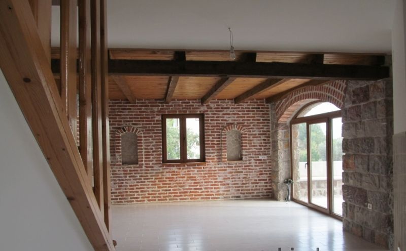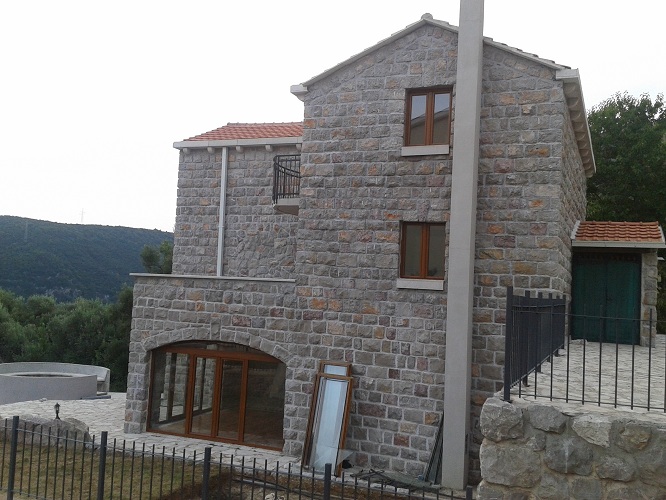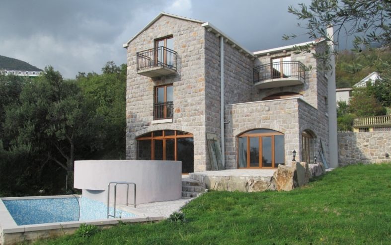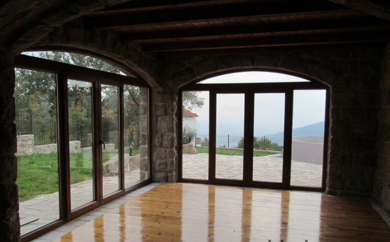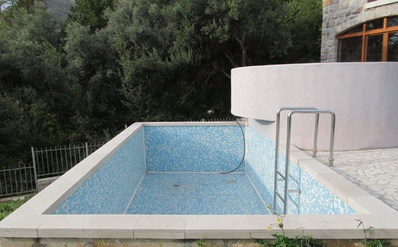 Three story villa located in part of Budva named Markovici (6km from city center). Surrounded with garden, olives, pool and pergola. First floor: living room, fire place, two terraces and one bathroom. Second floor: kitchen, bedroom, two terraces with beautiful view at Adriatic sea and city Budva. Third floor: two bedrooms, two terraces and one bathroom. Villa was built with natural stone and wood.