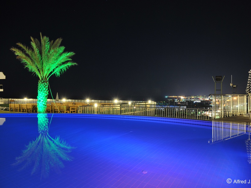 Открытый бассейн площадью 300 м2, откуда открывается вид на море и горы, просторный детский бассейн, бар-кафе у бассейна, шезлонги, спа-центр, закрытый бассейн с подогревом, джакузи, сауна, турецкая баня, тренажерный зал, беспроводной интернет на территории комплекса.