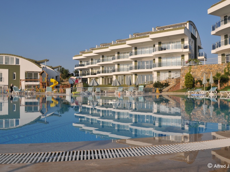 Комплекс состоит из пентхаусов, апартаментов дуплекс, и апартаментов с садом. Блоки в комплексе четырехэтажные. Квартиры очень просторные и комфортабельные. В каждой квартире имеется ванна-джакузи. В отделке использованы самые качественные материалы, что, безусловно, также является преимуществом. Над проектом работали архитекторы из Турции и Дании. Комплекс построен таким образом, что окна каждой квартиры выходят на юго-восток, что дает возможность ежедневно любоваться закатом. Также из апартаментов открываются замечательные виды на горы и средневековую крепость, главную достопримечательность города Аланья.