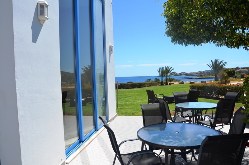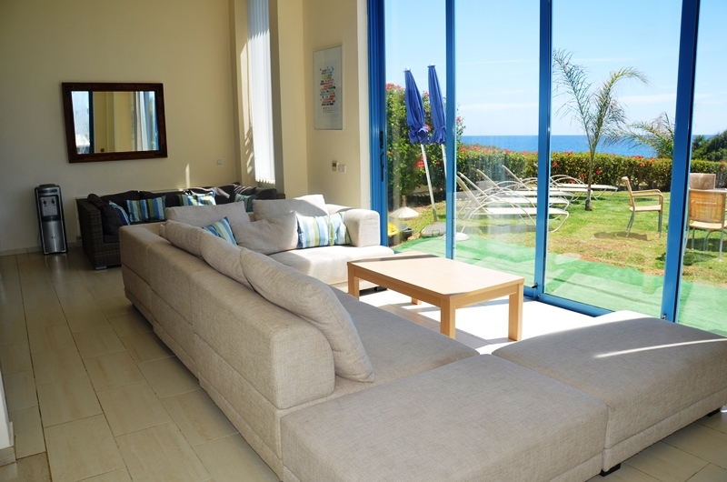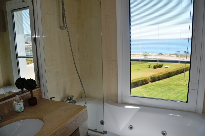 Absolutely stunning, Mediterranean style, spacious holiday villa in a fantastic location on the seafront, right in the heart of Protaras. The famous, extremely popular Fig Tree Bay is just a 1-minute walk away.This huge villa is comfortable, roomy, spacious and airy. Shops and restaurants are just a short walk away. This tastefully decorated spacious villa really is as luxurious as it gets with its high-quality marble finishes in the bathrooms and a luxury basement with a built-in jacuzzi, sauna and fitness machines. Just a few steps below the ground floor there is a bedroom with twin beds and a separate shower room. The ground floor is open plan and incorporates a fully equipped kitchen, dining area and living room with spectacular sea views. On the first floor there is a separate TV room, guest WC and a large bedroom with double bed and ensuite bathroom. The top floor incorporates an additional 4 bedrooms, the first with two twins beds and the rest with double beds and all with an ensuite bathroom. The villa is attached to green area and incorporates a large garden at the front with build-in barbeque and outdoors lounge where you can enjoy the amazing view and scenery.