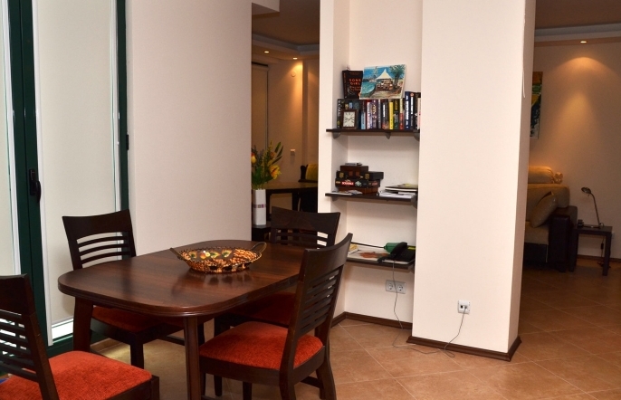 For sale-spacious fully furnished and equipped 2-bedroom apartment on the sea shore, 40 km away from Varna International Airport. The apartment is situated in Marina City Complex in Balchik - a small, picturesque town – 300 meters away from the Balchick Botanical Garden and the Palace of the Romanian queen. The Marina City Complex is situated within a 10-minute drive from Albena, a famous tourist resort, 25-minute drive from Golden Sands resort, and 30-minute drive from the Kaliakra fortress. The complex has a private yacht berth, shopping and fitness centre, 2 restaurants, and an open swimming pool with a sea view. This 2-bedroom apartment is offered for sale fully furnished and equipped. There are two spacious terraces that belongs to this offer, revealing magnificent view to the sea. The apartment has also two bathrooms with toilets.