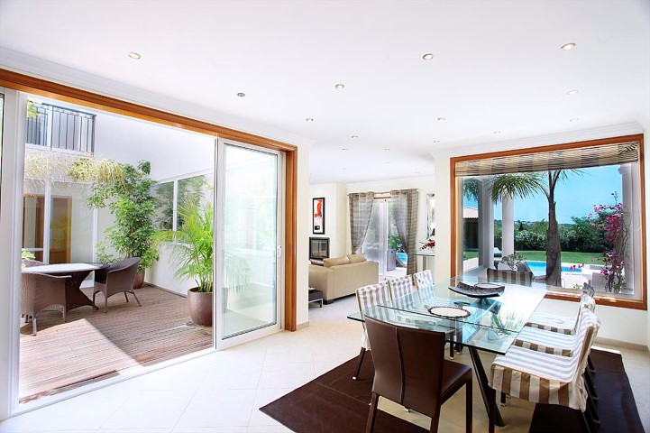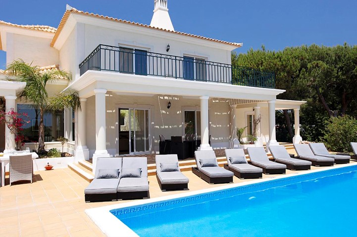 VAP11408 House 4 Bedrooms +1 located in a privileged area with panoramic views in Quarteira, a few minutes drive from Vale do Lobo and Vale do Garrão Beach. Completed in 2013 with luxury finishes consists of five bedrooms, five bathrooms, a living room and dining room, gym, balconies and garage with storage area. It has air conditioning, underfloor heating, central vacuum and alarm. Outside there is pool with heating system and a garden with dining area and leisure. Ideal for those looking to live a life without worries.