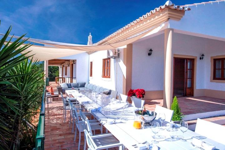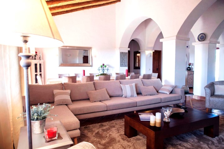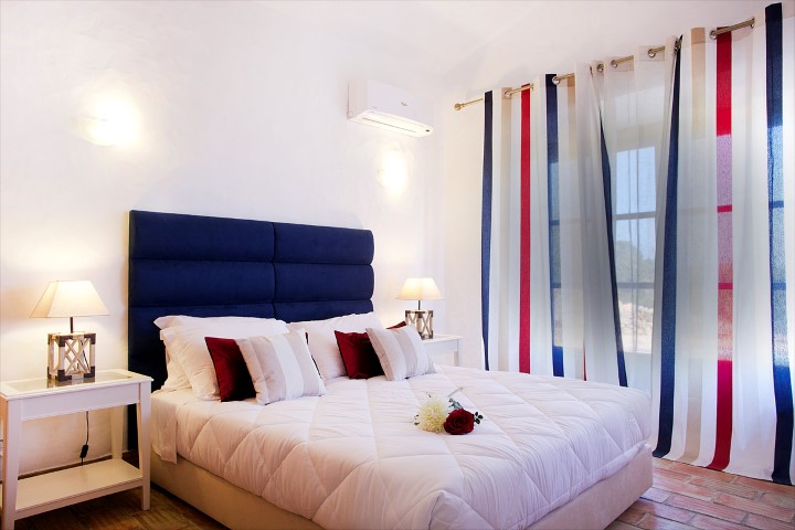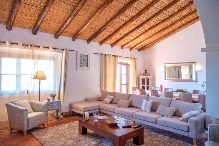 VAP11409 House T5+1 (6 bedroom) located in quiet area in Pechão, Olhão council, 10 km from Faro International Airport. In rustic style, the property consists of six bedrooms, five bathrooms, a living and dining room, a fully equipped kitchen and storage area. It has air conditioning, underfloor heating and heating. Outside there is a swimming pool with heating and patio area with outdoor dining and leisure. The ideal property for the whole family.