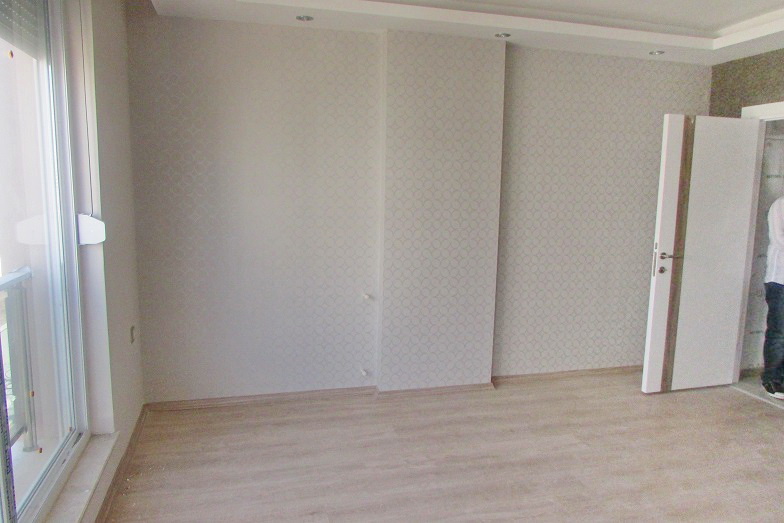 Квартира на 3 этаже с видом на бассейн, кухня американского типа совмещена с салоном, установлен кухонный гарнитур, газовая и духовая печь, вытяжка, на стенах обои, на окнах роль ставни, установлено 2 кондиционера, в ванной душ кабина, бойлер для нагрева воды, встроенные шкафы, так же встроенный шкаф в прихожей, видео домофон, большой балкон, разно уровневое освещение.