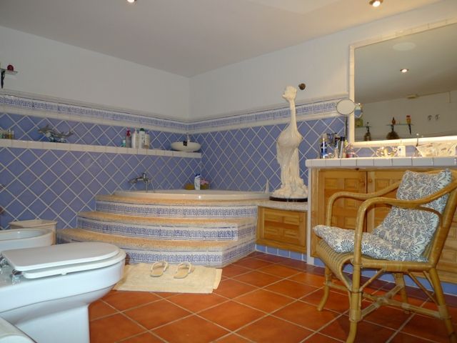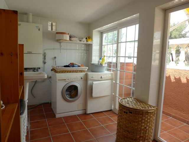 Large house with 5 bedrooms and an office, a large living room with fireplace, kitchen , 3 bathrooms . Plot with barbecue and dining area . Swimming pool . Infrastructure. 10 minutes from Benidorm and beaches. Mortgages up to 70%