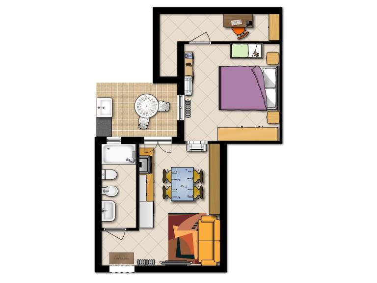 In the city center of Scalea is 200 meters from the shopping center and 400 meters from the railway station. The apartments are located in a closed area with automatic gates, in a residential complex "Soeve." Distance from the sea 200 meters. The apartment is fully renovated, is located on the fifth floor. The total area of 40m2 + 6m2 balcony, a living room with kitchen, bedroom, small room, bathroom and balcony. There is air conditioning and new furniture.