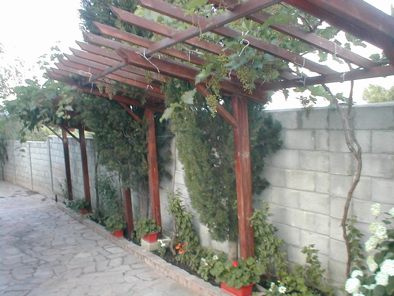 Двор площадью 655 кв.м. красиво оформлен цветами. Есть поливная система для цветов. Кирпичный забор с электронными воротами для автомобилей. Имеется канализация, электричество и водопровод . Так же есть отдельная помповая система для добывания воды. В доме имеется барбекю 20 кв. м.. Дом располагает сигнализацией, спутниковым телевидением, интернетом, и четырьмя кондиционерами.