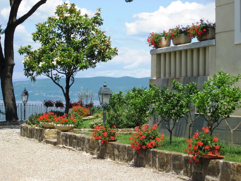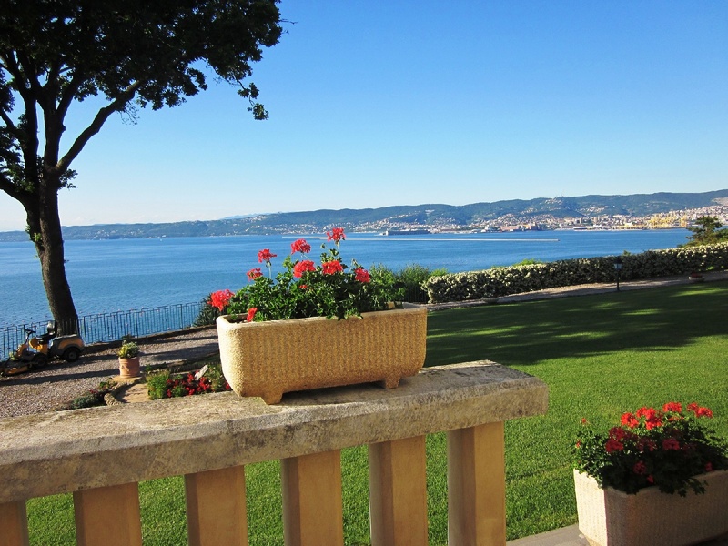 Дворец в Италии неподалеку от города Триест. Дворец был построен в 1830 году, с полностью отремонтирован и отреставрирован в 2007 году. Площадь дворца 600 квадратных метров, во дворце 10 комнат. Зданиие дворца окружено красивым и ухоженным парком площадью 12000 квадратных метров. На участке находятся теннисный корт и домик для прислуги площадью 100 квадратных метров. Вид на целый залив, расстояние от моря 100 метров. По частной дороге можно выехать на главную дорогу, которая вдоль побережья ведет в словенский город Анкаран.