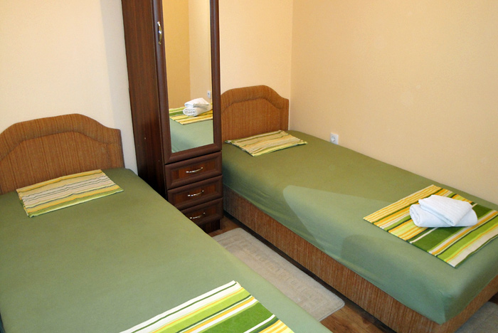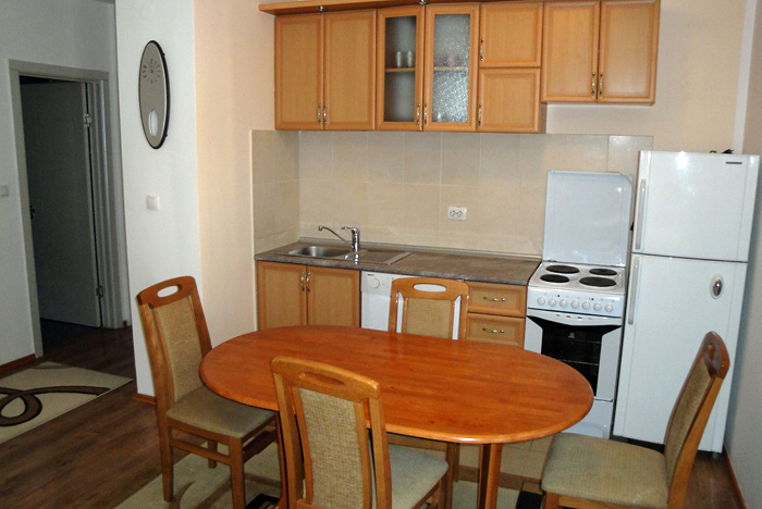 Сдается уютная четырехкомнатная квартира в городе Будва, расположенная в тихой части города в жилом доме на третьем этаже. В квартире может разместиться максимум 7 человек. В квартире: три спальни, гостиная с кухней, ванная комната с душевой кабиной, две террасы. В первой спальне находится двуспальная кровать, во второй спальне – две односпальные кровати, в третьей спальне – одна односпальная кровать, в гостиной – раскладывающийся диван. Также в квартире есть все необходимое для комфортного отдыха: стиральная машина, машина для мытья посуды, телевизор (кабельное ТВ), WIFI интернет, холодильник, кондиционер, кухонные принадлежности, постельное белье, полотенца. Уборка квартиры, смена постельного белья и полотенец производится один раз в неделю и включена в стоимость. В непосредственной близости расположены рестораны и кафе, супермаркет, мясная лавка, аптека, банкомат. Квартира находится в 300 метрах от моря, до ближайшего ресторана - 150 метров, до супермаркета - 150 метров.