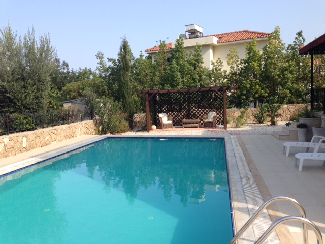 This superb 4 bedroom spacious villa has been immaculately designed & part furnished offering all luxuries you could possibly imagine. Located only 5 minutes drive east of Kyrenia, boasting magnificent sea & mountain views, beautiful landscaped gardens & it’s large private pool. TITLE DEEDS READY / VAT PAID Main features: • 4 Bedroom spacious villa • Master bedroom with en-suite • Spacious lounge & dining room • Luxury fitted open plan kitchen • Extensive terracing • 1000m2 plot size • Double glazing windows • Landscaped gardens & garden shed • 5m x 10m Overflow swimming pool • Uninterrupted sea and mountain views • Paved driveway with iron gates • 225m² Coverage area,