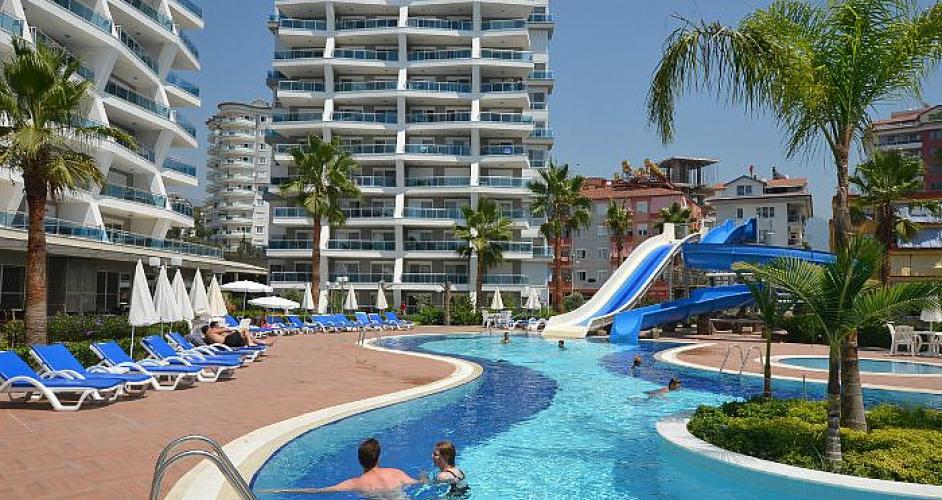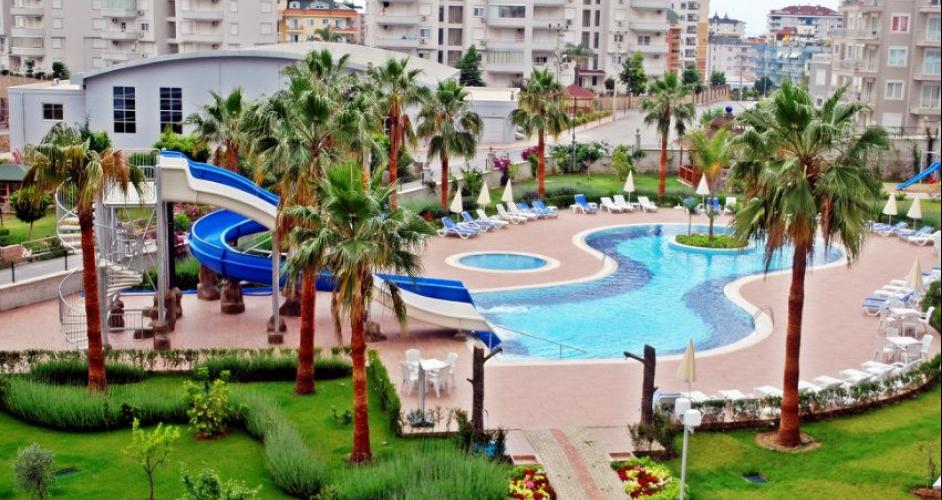 This apartment is located in one of the most well-known luxury complexes CRYSTAL GARDEN. The complex has an outdoor swimming pool with waterslides, an indoor pool, fitness room, sauna, Hamam, bar - restaurant, children's Playground, 7/24 security, open car Parking, Concierge, territory ogorozhena fence. The apartment is fully furnished, complete with required to stay in her textiles and kitchenware. The complex has its own free private beach and free bus service 2 times a day from/to the beach. The nearest beach(surcharge) 900 m, shopping centre 200 m, bus stop 200 m, to the center of Alanya 2.5 km.
