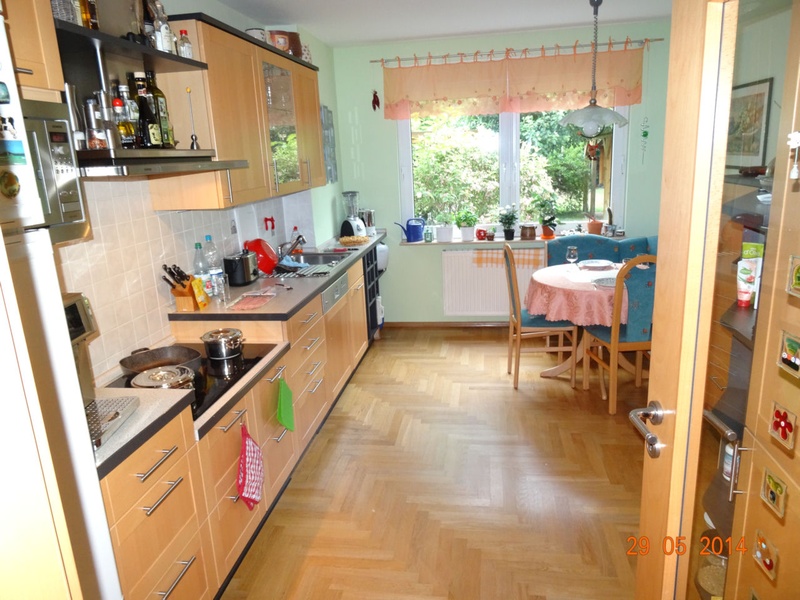 В городской вилле с 4 квартирами в районе Панков пподается двухэтажная квартира с примерно 145 м ² жилой площади и 136 м ² сад. Пятикомнатная квертира простирается от подвала до 2-ого этажа. Все этажи доступны через винтовую деревянную лестницу, но также можно попасть на них с общей лестницы. Все номера, кроме прачечной и двух ванных комнат оснащены 19тимиллиметровым дубовым паркетом. Все комнаты в квартире освещены большими окнами, что делает квартиру очень светлой.