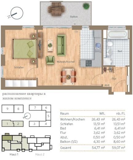 Практичная 2-кмн. квартира с балконом является частью нового жилого комплекса, который вскоре будет возведен в северной части Мюнхена, примерно в 5-ти км. от старого города. Квартира продается с чистовой отделкой и полным оснащением и готова к заселению сразу же после официальной передачи её владельцу! Никаких дополнительных работ производить не требуется! Квартира может быть также интересна в качестве инвестиционной недвижимости!