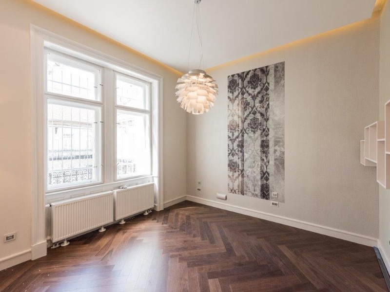 In one of the most beautiful houses of Belgrad rakpart (part of the World Heritage) luxury apartment for sale: living + 3 bedrooms, 3rd floor, windows to Molnar utca. Contact: in English, Hungarian or German via e-mail or telephone, in Russian via e-mail only.