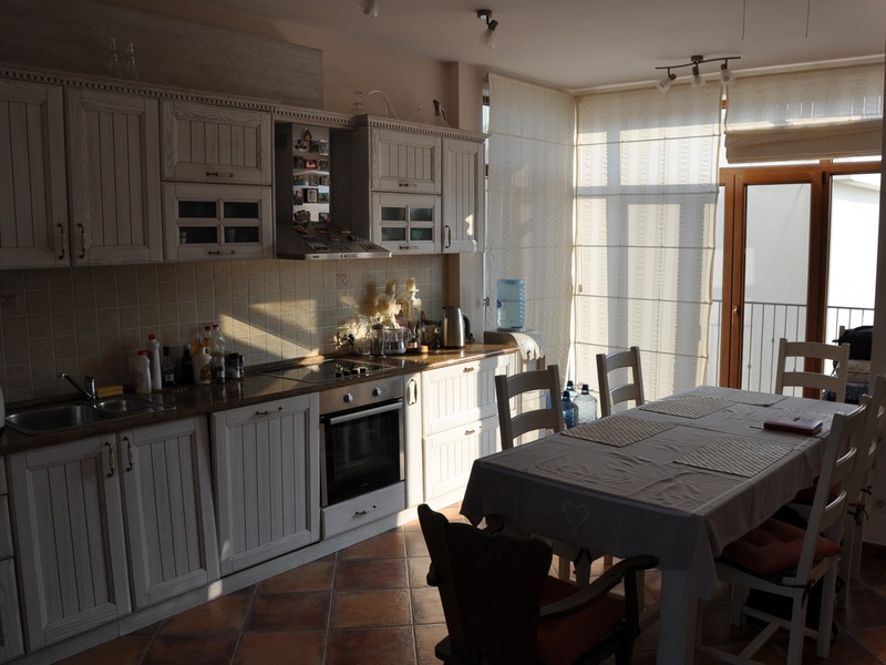 На кухне установлен итальянский гарнитур, дополненный двухкамерным холодильником, качественной варочной поверхностью, духовкой, посудомоечной машиной, вытяжкой, кулером.