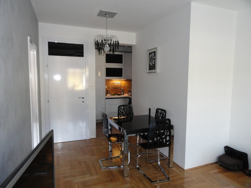 Квартира площадью 47 m2 на I этаже. Коридор, гостиная со столовой, отдельная кухня, спальня, ванная комната и терраса. Выход на террасу из гостиной и спальни. Эксклюзивно меблирована итальянской мебелью. Место на парковке перед домом, агрегат, запасной резервуар для воды. Дом построен три года назад. Возможность покупки места в подземном гараже.