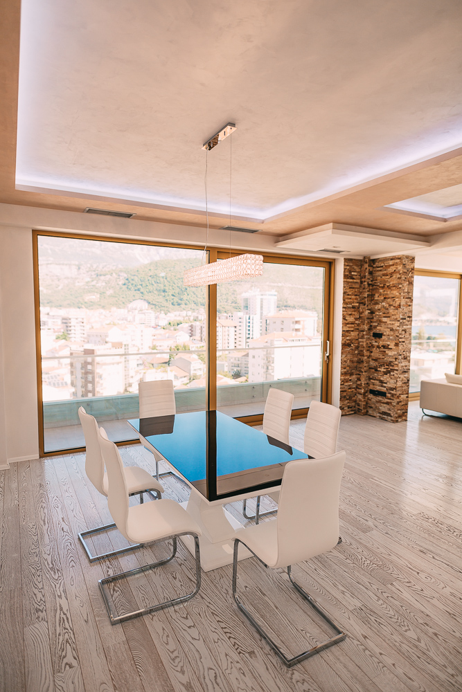 The base of the building - the framework is made from reinforced concrete, external walls - brick, with a layer of insulating material. The facade is covered with “Travertini” granite. Structures built using this technology have high strength, which is very important in a seismically hazardous area, like Montenegro. Electrical wiring and plumbing is installed inside the concrete walls before pouring concrete. This increases reliability and eliminates the possibility of damage during use.