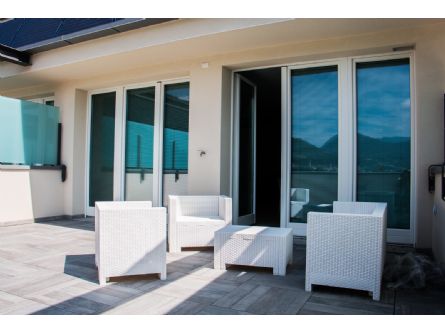 Penthouse for sale in Lovere, in Lombardy, it is subject to the administrative center of Bergamo, Italy. Luxurious penthouse overlooking the lake of 125 square meters, consisting of kitchen, living room, 2 bedrooms, 2 bathrooms, terrace, private swimming pool on the roof, garage for two cars, parking outside. All units will have floor heating, alarm, security door, video surveillance, air conditioning, jacuzzi built with special attention to energy efficiency, starting with solar panels, the solar panels. Residence provides buildings with 4 floors, which allows the creation of hanging gardens. The recreation area where there is a bike path that stretches the length of 10 km, tennis courts and swimming pool exclusively for condominiums; 5 minutes from the center. Place dedicated to children: a playground for children. Also important is the availability of the pool, four tennis courts, a fitness center and bicycle paths within the complex, all will be separate from the body in order to ensure peace of privacy for those who inhabit the residence. The architectural style of the building has a significant and uses linear terraces game with hanging gardens overlooking the lake. Garages are built in the basement while the outdoor parking lots cover an area of 13,000 sq.m.