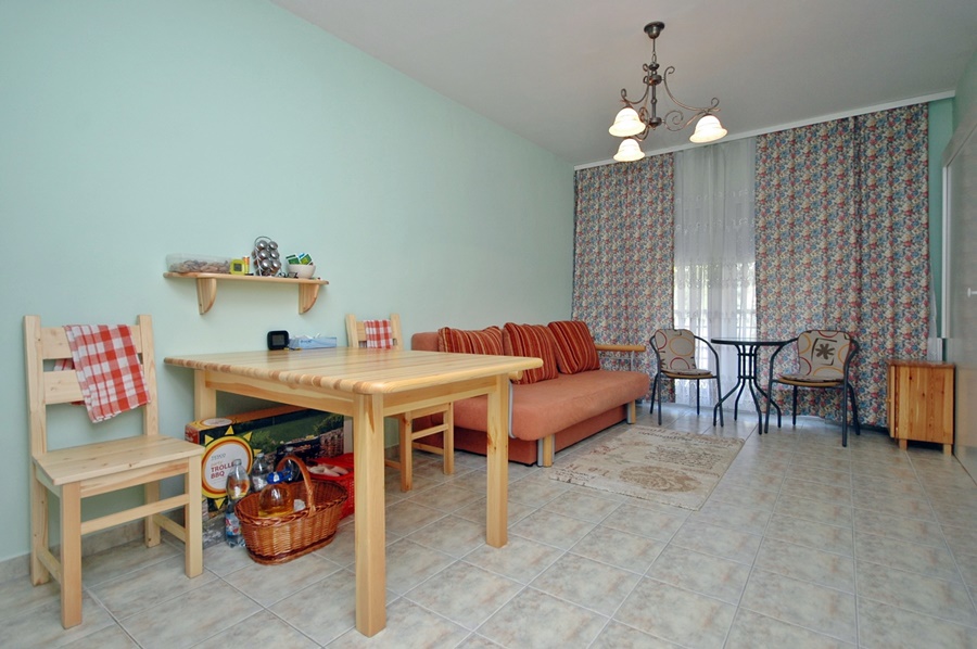 Квартира 44,0 m2: прихожая , ванная – туалет ,гостинная , кухня – столовая , комната , балкон . Гараж 18,0 m2.