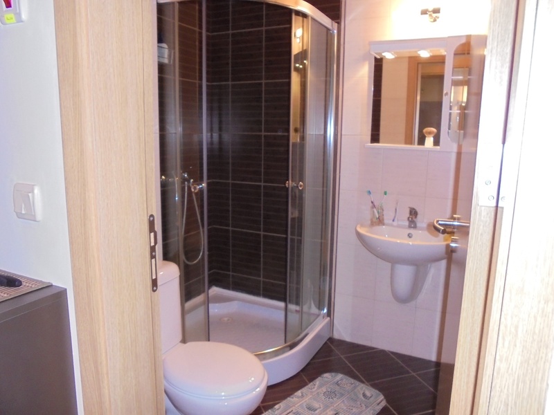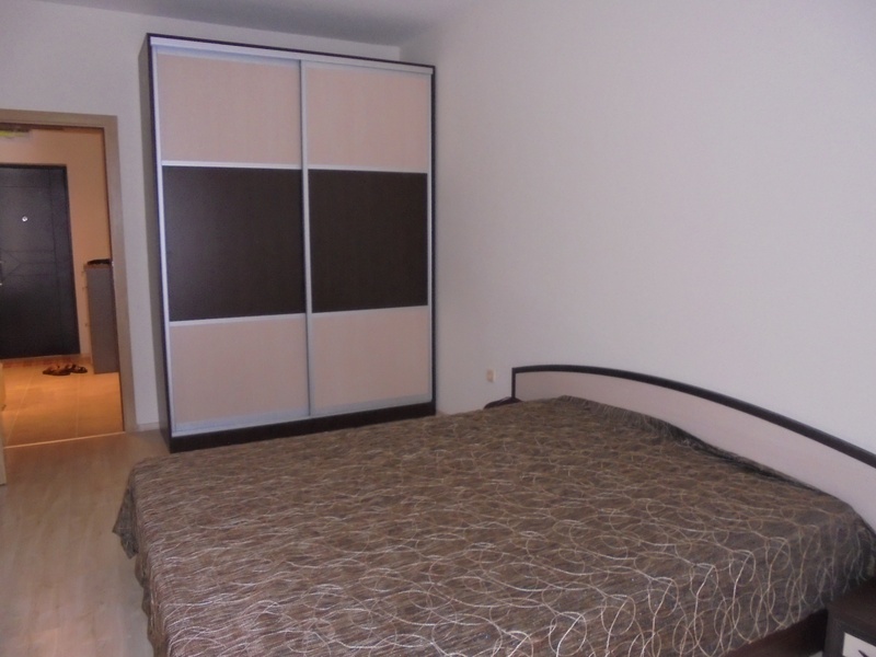 Квартира /новая/ (апартаменты с одной спальней) расположена на втором этаже. Жилая площадь – 76 кв.м.. Квартира состоит: прихожая (встроенная стенка с шкафом /с зеркалом/, вешалкой, тумба для обуви), гостиная с кухней (раскладной диван, стол, кондиционер, стенка, телевизор, кабельное ТВ ), терраса  во двор (14 кв.м), спальня (двуспальная кровать, шкаф-купе, комод с зеркалом, кондиционер, кабельное ТВ), санузел с душевой кабиной. Кухня оборудована: холодильник, электрическая плита, чайник, тостер, духовка, посудомоечная машина, минибойлер, посудой.                    Имеется стиральная машина.