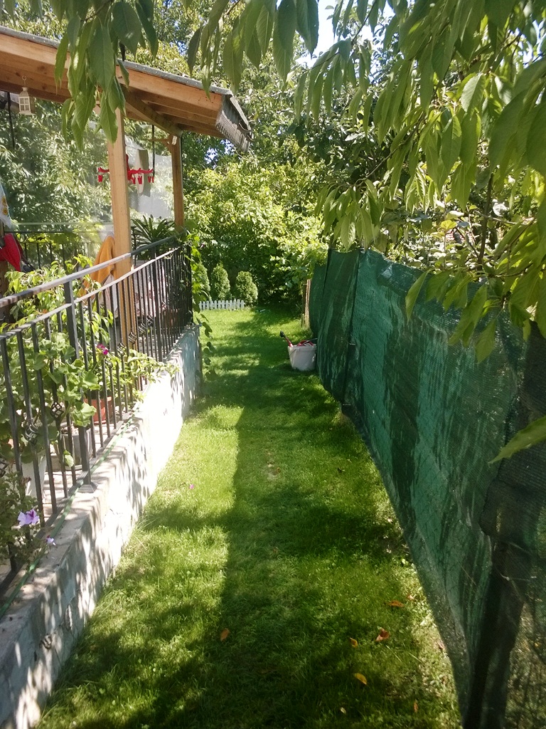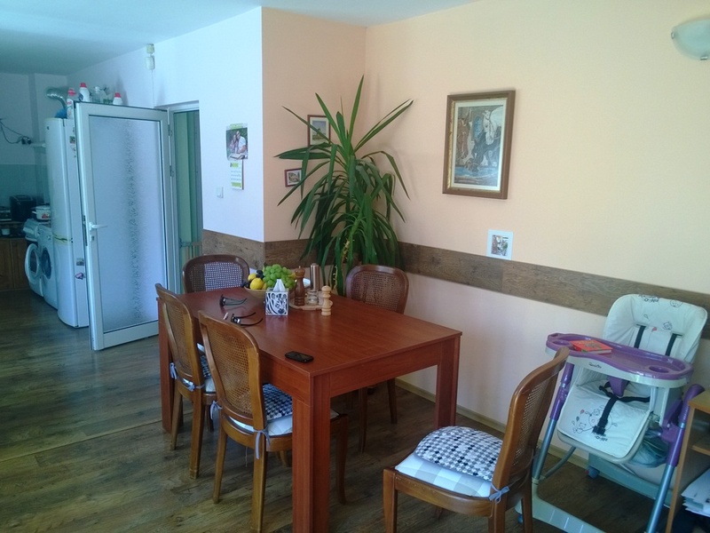 Напольное покрытие терракотовая плитка и высококачественный ламинат, на полу имеется пятисантиметровая изоляция. Имеется внешняя изоляция дома и пятикамерный стеклопакет. Дом располагает большой верандой 25 м2 перед гостиной , большая часть которой покрыта. Имеется гараж  площадью 30 м2. Двор площадью 305 м2 красиво оформлен цветами и кустарником , который посажен , как ограда. Имеется полное машинное оборудование и инвентарь для ухода за садом. Имущество располагает полной строительной документацией и актом 16. Так же есть электричество, водопровод, интернет и телевидение.