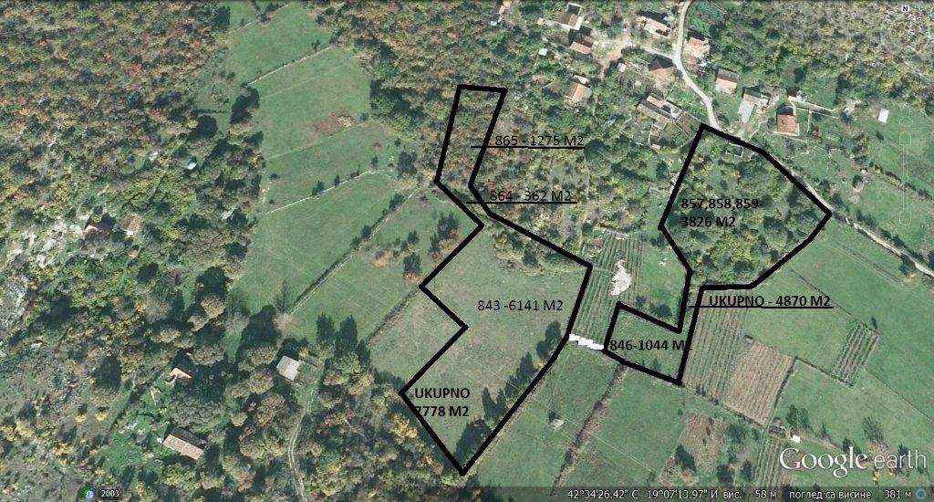 For sale a family farm, land, land, near Danilovgrad (4 km from the center) is just around the road Danilovgrad - Ostrog monastery. Size 1920 m2 to 9706 m2,, meadows, pastures, forests (300 m3 of timber). Uknjizeno, property 1/1, at one site will be located collapsed stone house, which is otherwise registered in the cadastral numbers and possible construction, the total area for sale of about 42,000 m2 on the basis of the contract price, in real-6 euros / m2,,, John (00381) 064-110-80-96 Belgrade,,, .. mail Jovan.saranovic@gmail.com